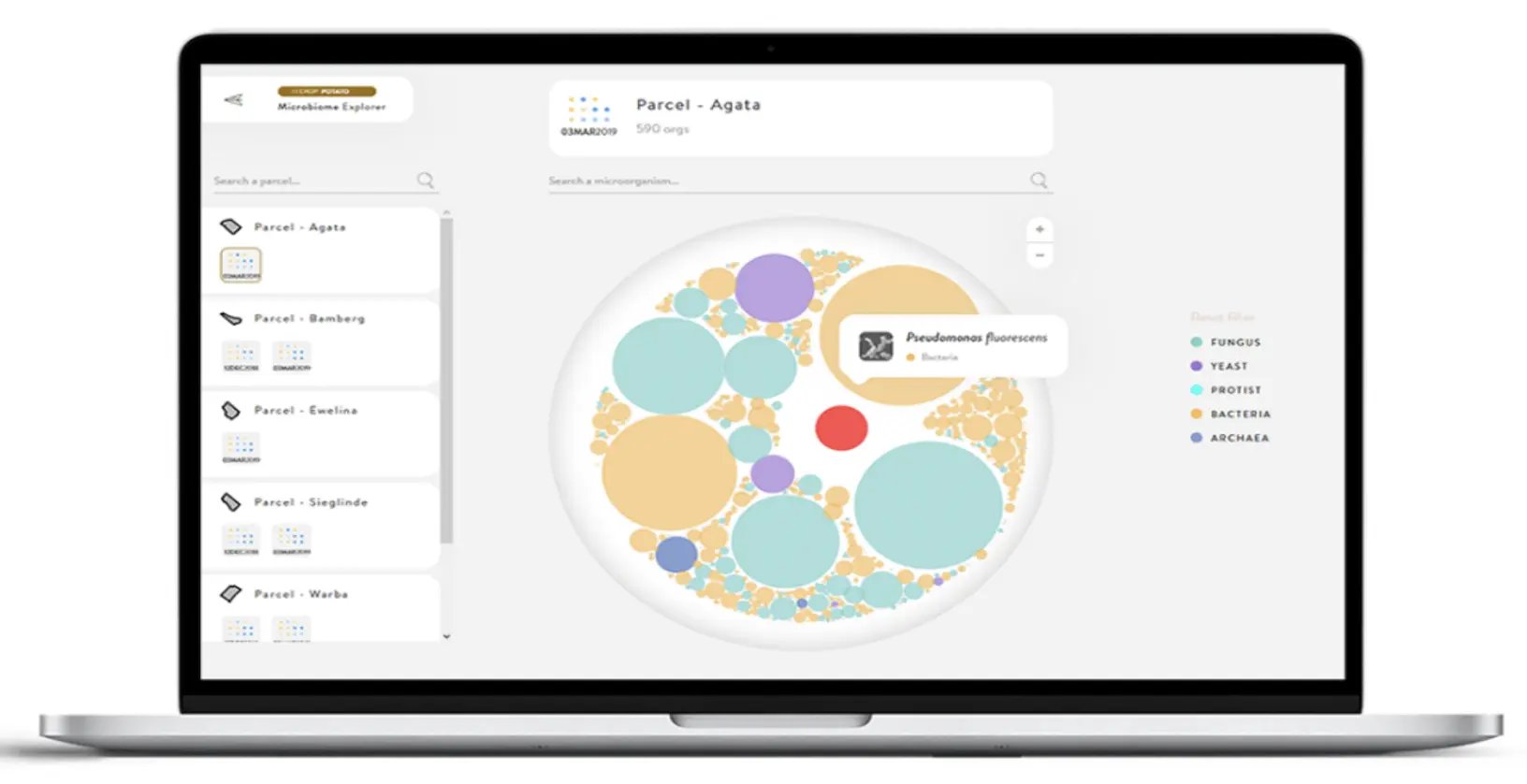 The species present in the sample can be identified by comparing the DNA sequences obtained from the soil sample to Biome Makers’ taxonomic reference database. Their abundance can be estimated based on the amount of DNA detected. This allows for the quantification of different microbial species in the soil sample. BeCrop technology allows for a more comprehensive and accurate soil microbiome analysis than traditional soil testing methods.